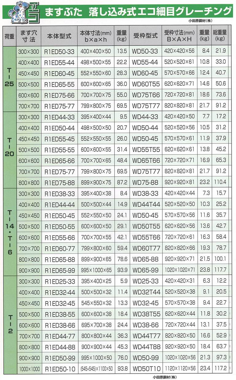 ダイクレ 長野県型 グレーチング 小田原鋼材(株)