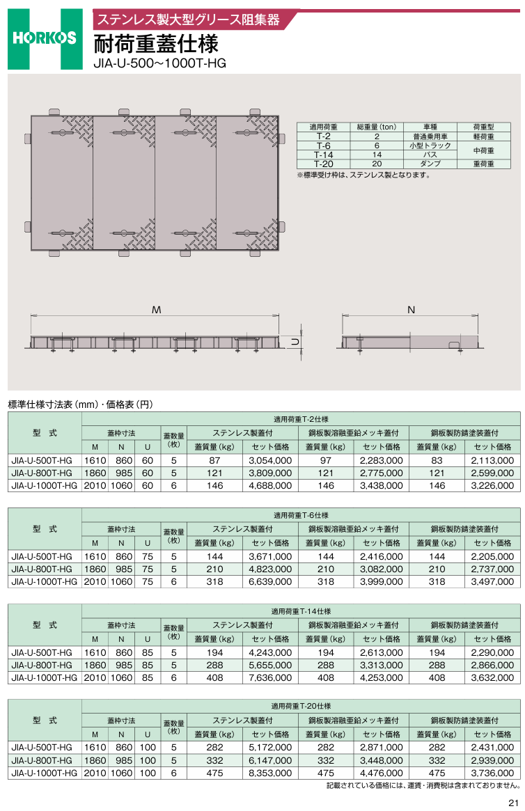 ホーコス グリストラップ JIA−U−500〜1000T−HG