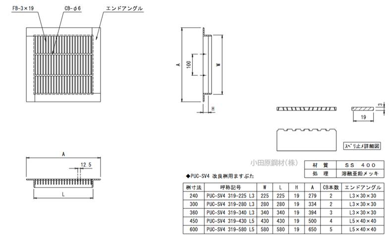 ニムラ製 四面ツバ付 細目 SUC−SV4 SUC−S4 グレーチングの小田原鋼材(株)