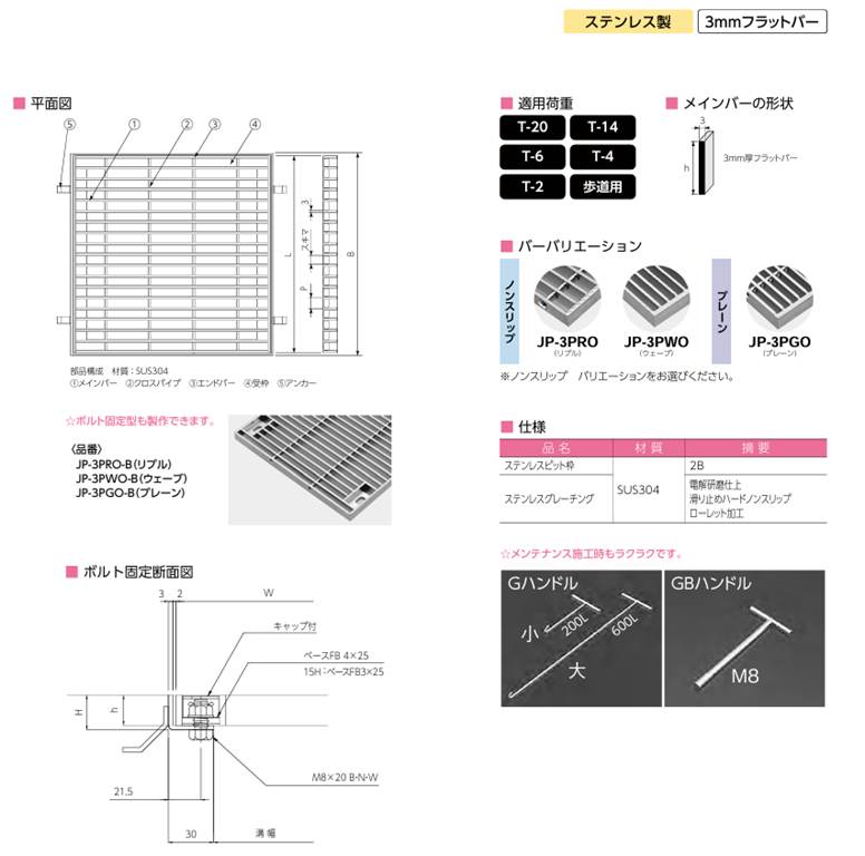 小田原鋼材(株) 日本ピット グレーチング カタログ JP−3PRO JP−3PWO JP−3PGO