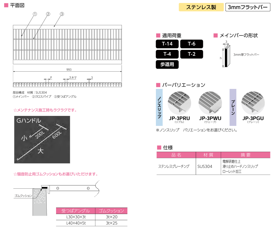 小田原鋼材(株) 日本ピット グレーチング カタログ JP−3PRU JP−3PWU JP−3PGU