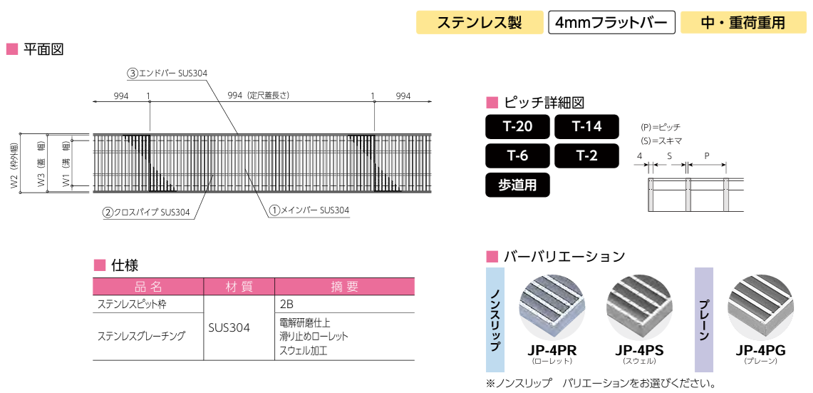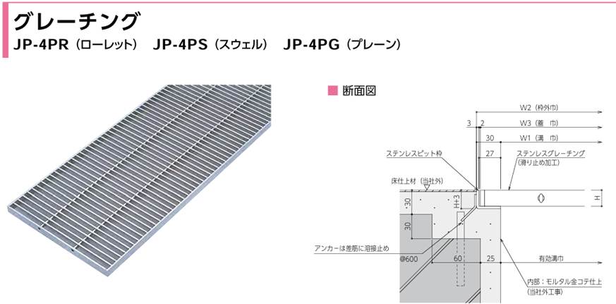 小田原鋼材(株) 日本ピット グレーチング カタログ JP-4PR JP−4PW JP−4PG