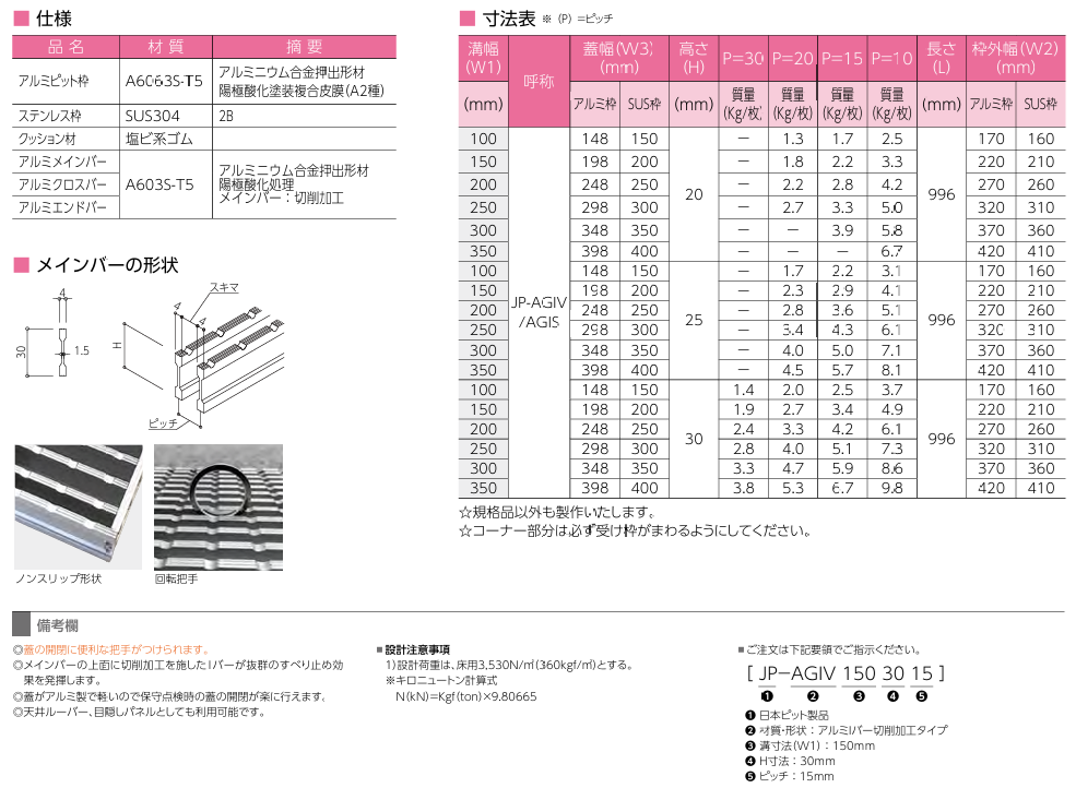 小田原鋼材(株) 日本ピット グレーチング カタログ JP-AGIW アルミグレーチング