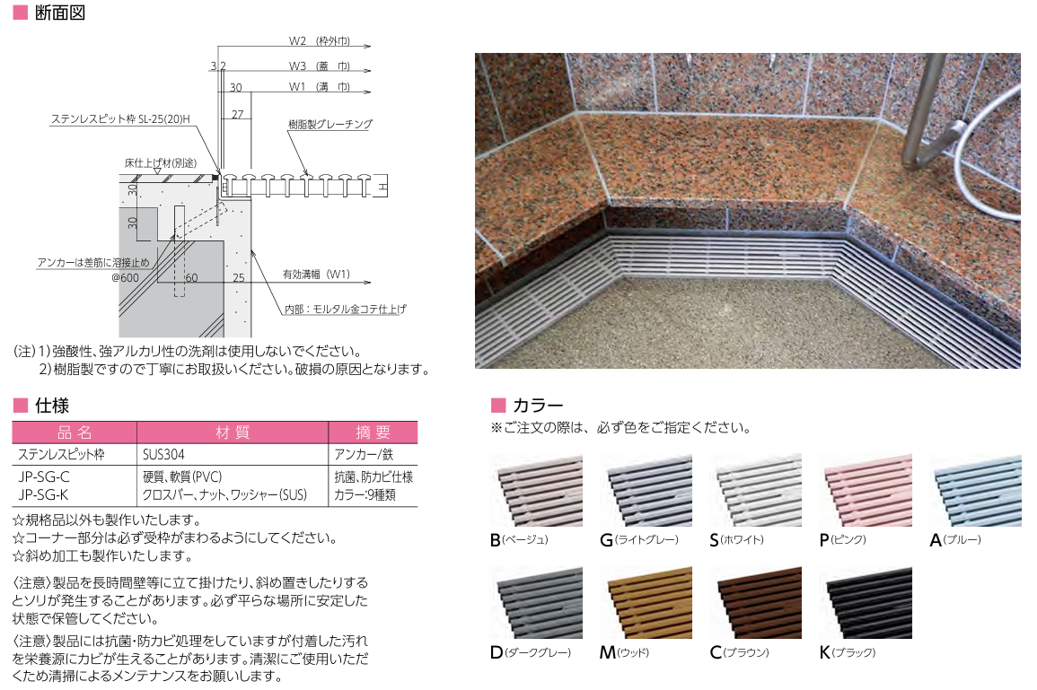 小田原鋼材(株) 日本ピット グレーチング カタログ JP−SG−C 浴室 シャワールームなどに