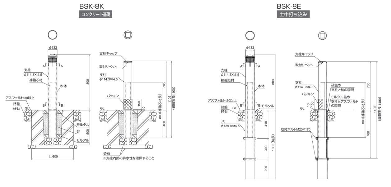 BSK-8D(基礎式)脱着(サヤ管)式、弾性カバータイプ |