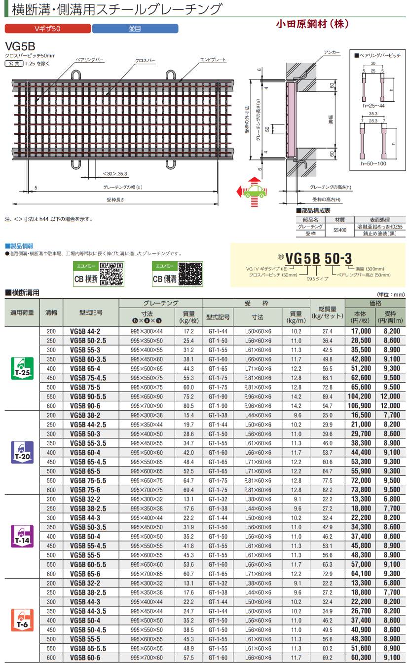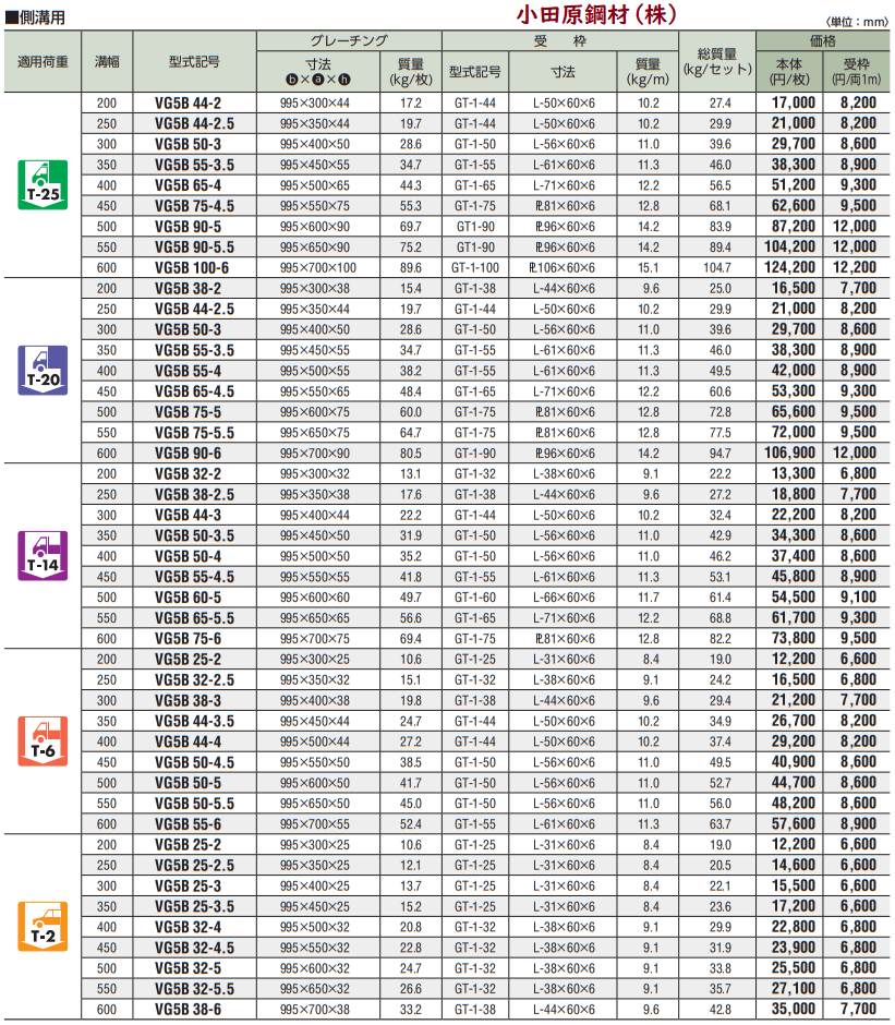 中部コーポレーション 2025年新価格 VG5B 一般タイプ 定価の40%OFF! グレーチングの小田原鋼材(株)
