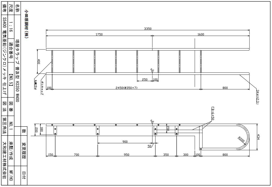 下記図面 当社に見積の方のみご使用可能です (ホームページ等へのコピーは禁止致します) 長いタラップの図面もありますので まずはお問い合わせください。