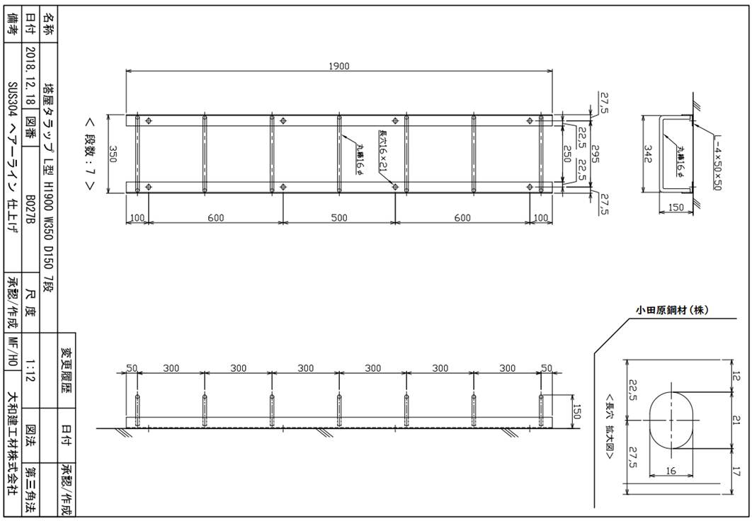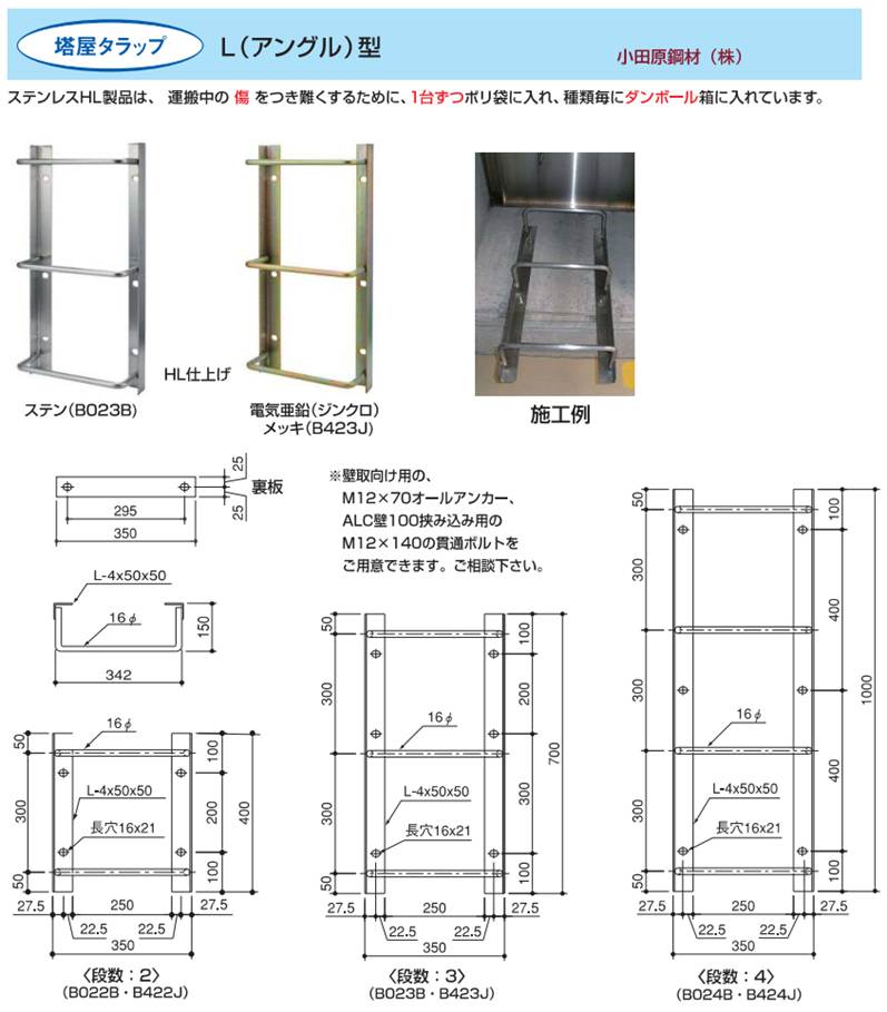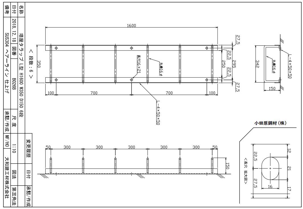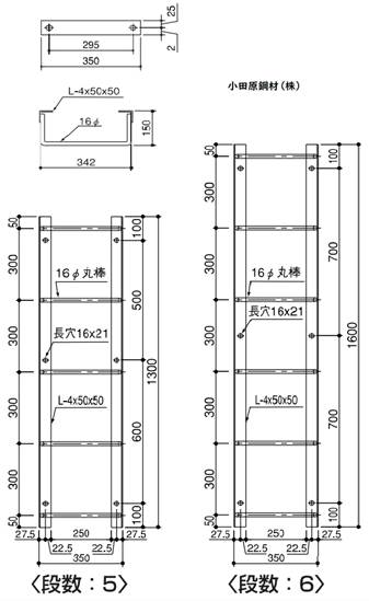 塔屋タラップ Lアングル型 大和建工材 販売の小田原鋼材(株)