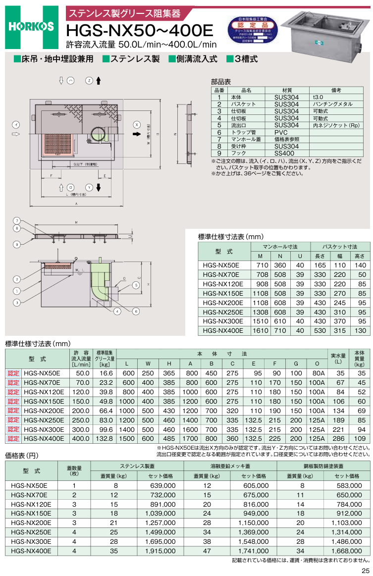 ホーコス グリストラップ HGS−NX50 グリース阻集器