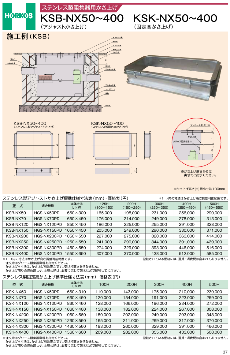 ホーコス グリストラップ KSB−NX50〜400 KSK−NX50〜400 アジャストかさ上げ 固定高かさ上げ