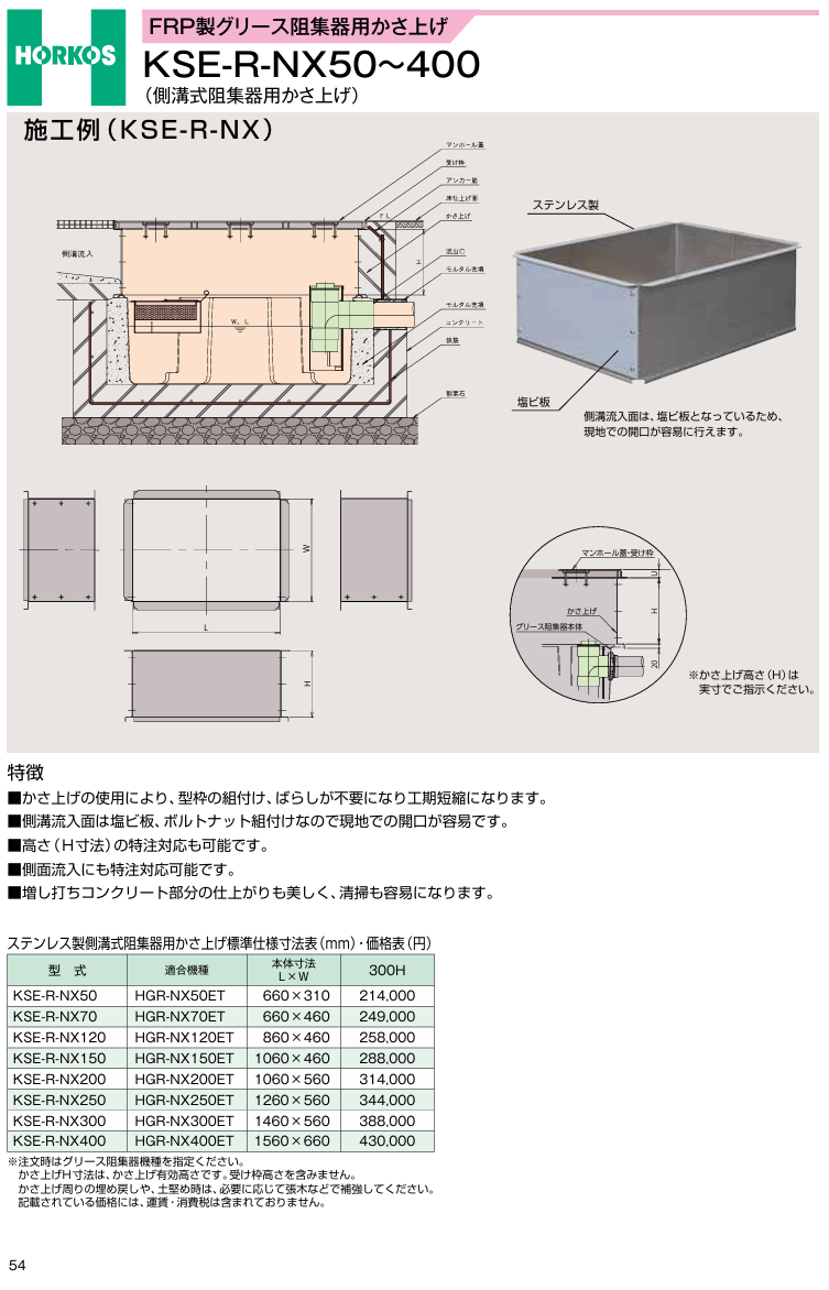 ホーコス グリストラップ KSE−R−NX70 HGR−NX120ET HGR−NX150ET 側溝式阻集器用かさ上げ