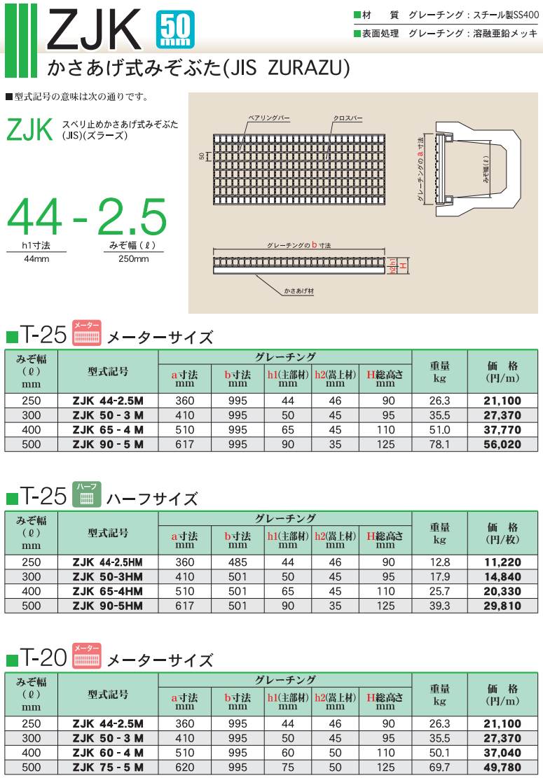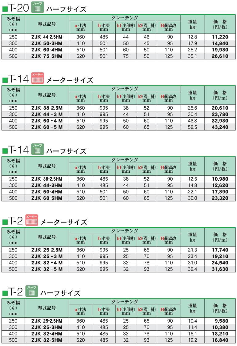 カワグレ ZJK(JISタイプ) カタログ価格表 定価の25%OFF! グレーチング専門の小田原鋼材(株) 2025年新価格