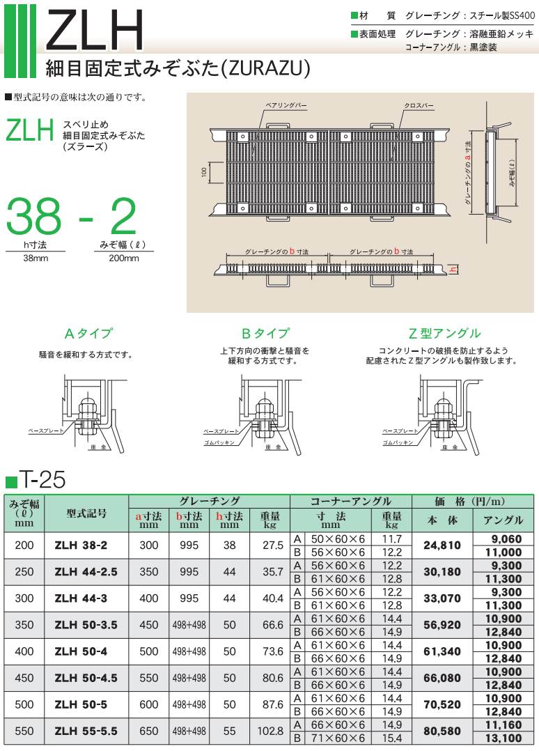 カワグレ ZLH カタログ価格表 定価の25%OFF! グレーチング専門の小田原鋼材(株) 2025年新価格