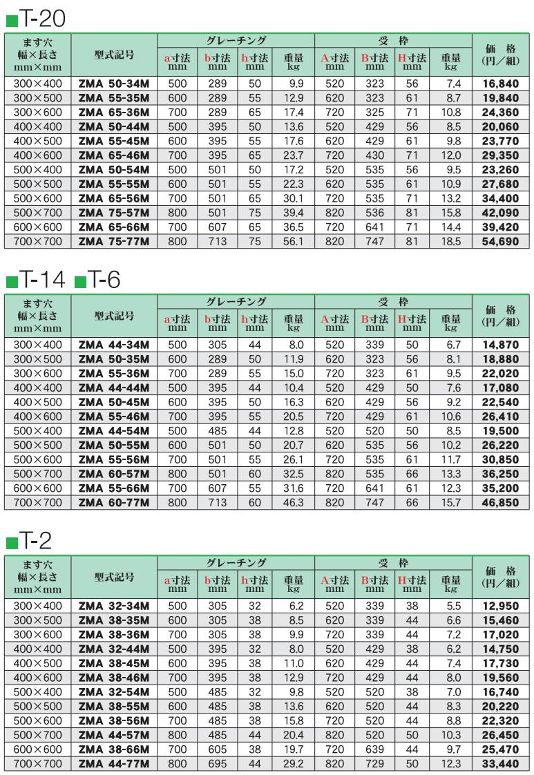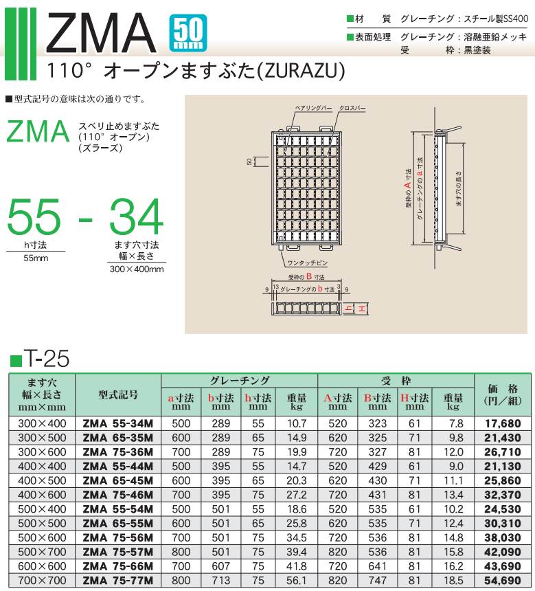 カワグレ ZMA 110°開閉 カタログ価格表 定価の25%OFF! グレーチング専門の小田原鋼材(株) 2025年新価格