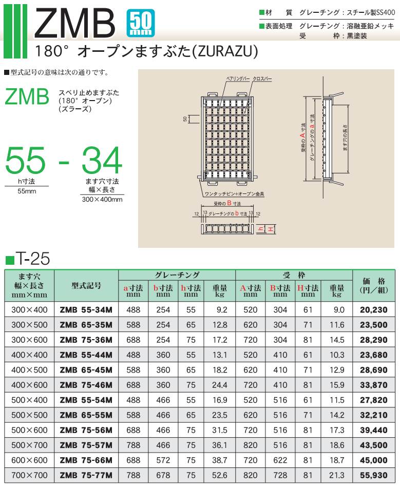 カワグレ ZMB 180°開閉 カタログ価格表 定価の25%OFF! グレーチング専門の小田原鋼材(株) 2025年新価格