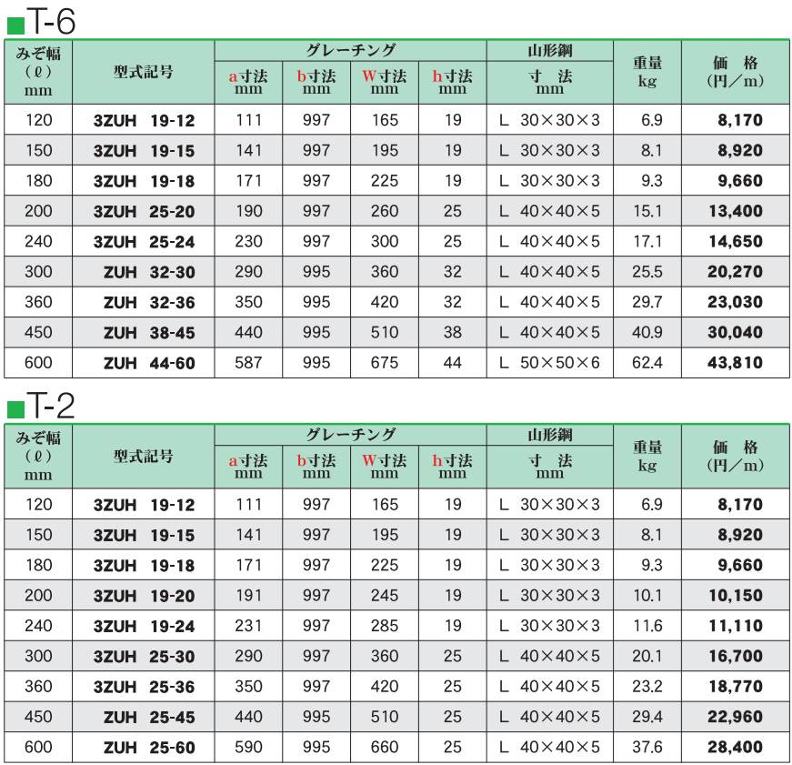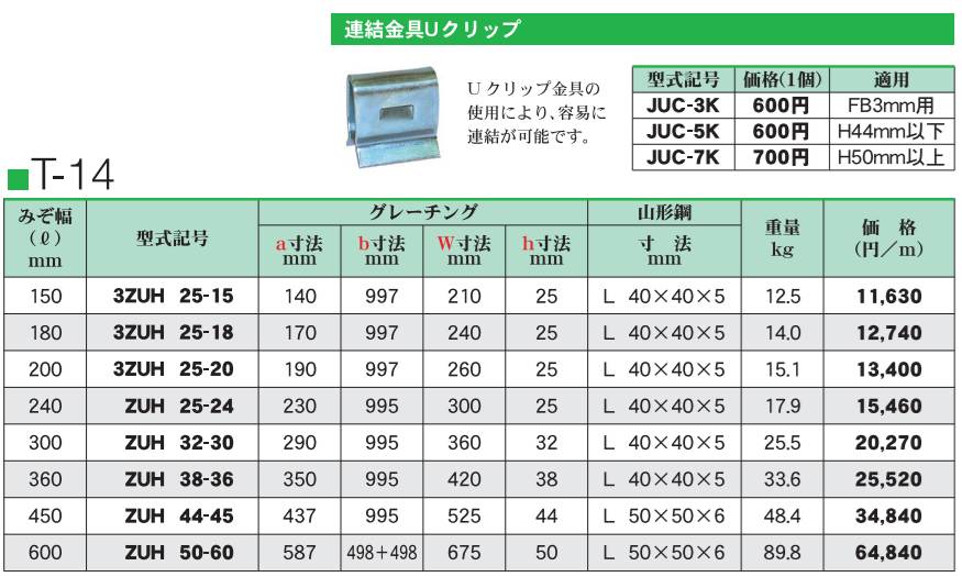 カワグレ カタログ価格表 ZUH 定価の30%OFF!(業者向け価格) グレーチング専門の小田原鋼材(株) 2025年新価格