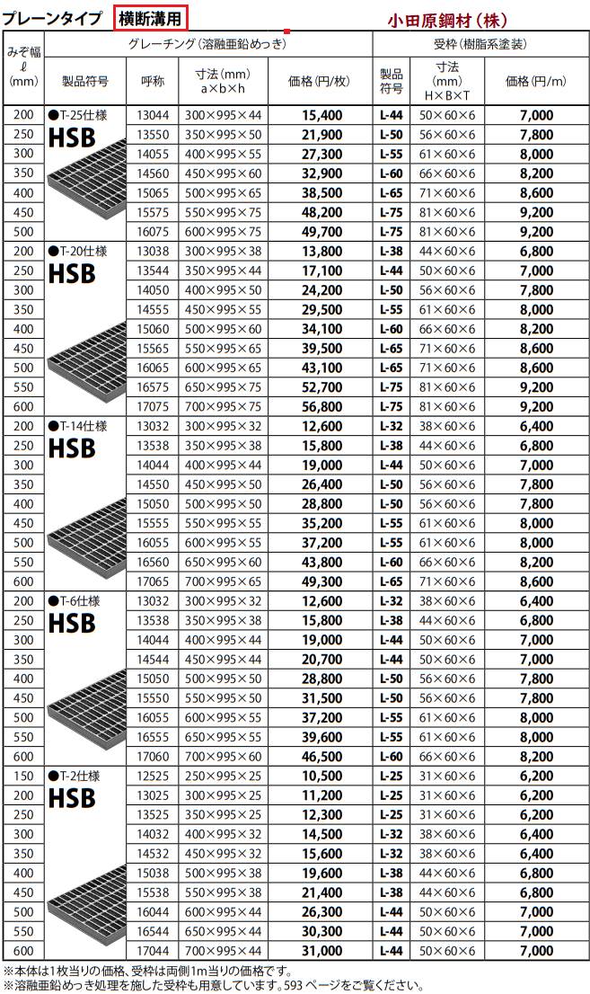 カネソウ 2025年新価格 HSB 業者向け価格 定価の40%OFF! グレーチングの小田原鋼材(株)