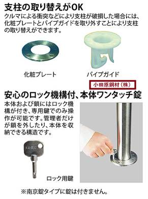 Sが付くとスプリング付タイプとなります(車が軽く当たる程度では損傷を軽減してくれるタイプです)