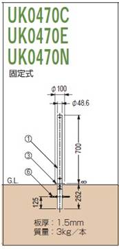 固定式 (固定式は設置後のポール交換は出来ませんのでご了承ください。)