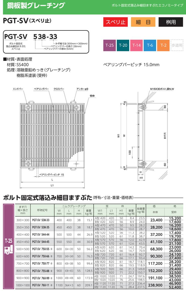 ニムラ製 ボルト固定 集水桝 マスブタ PGT−SV PGT−S グレーチングの小田原鋼材(株)