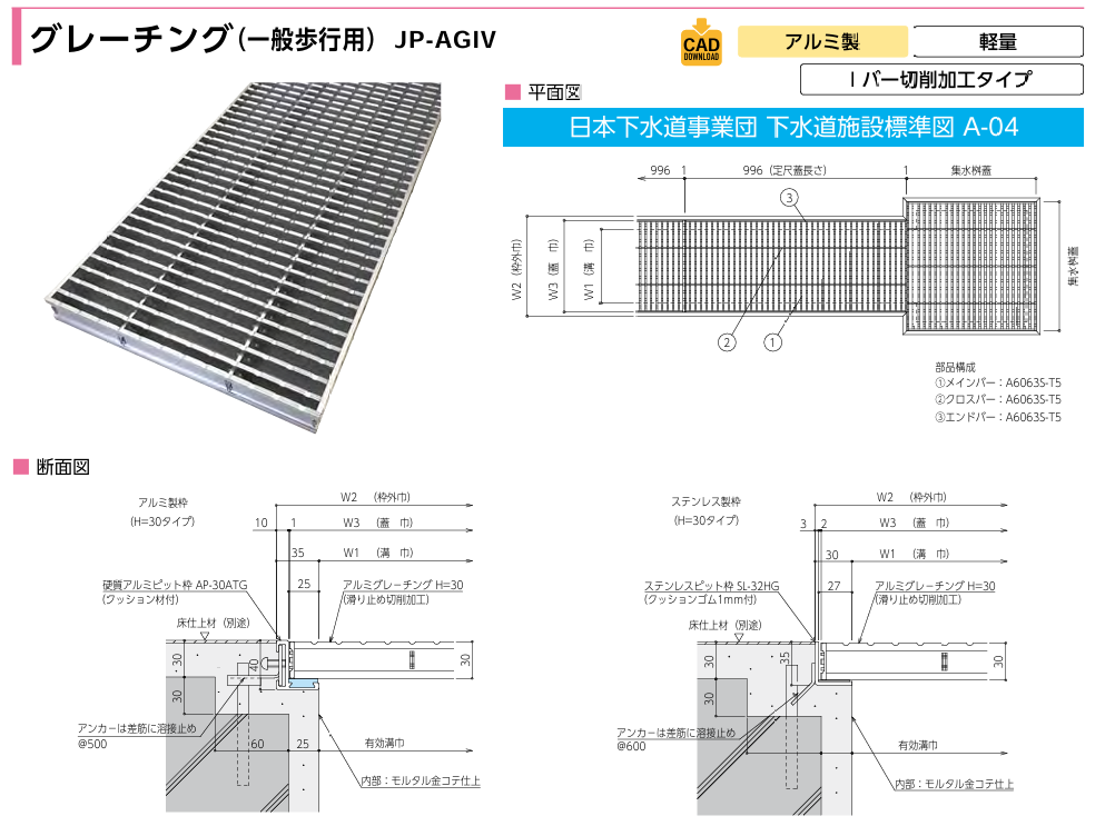 小田原鋼材(株) 日本ピット グレーチング カタログ JP-AGIW アルミグレーチング