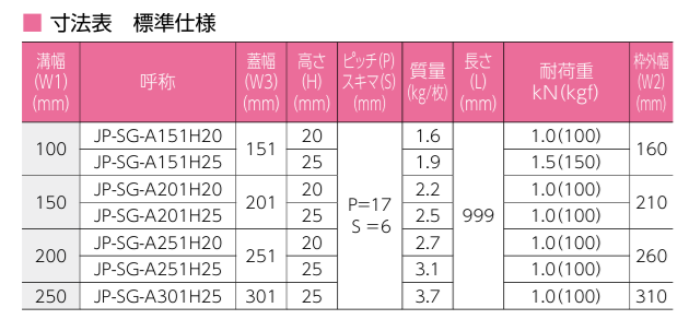 小田原鋼材(株) 日本ピット グレーチング カタログ 樹脂製グレーチング JP−SG−A