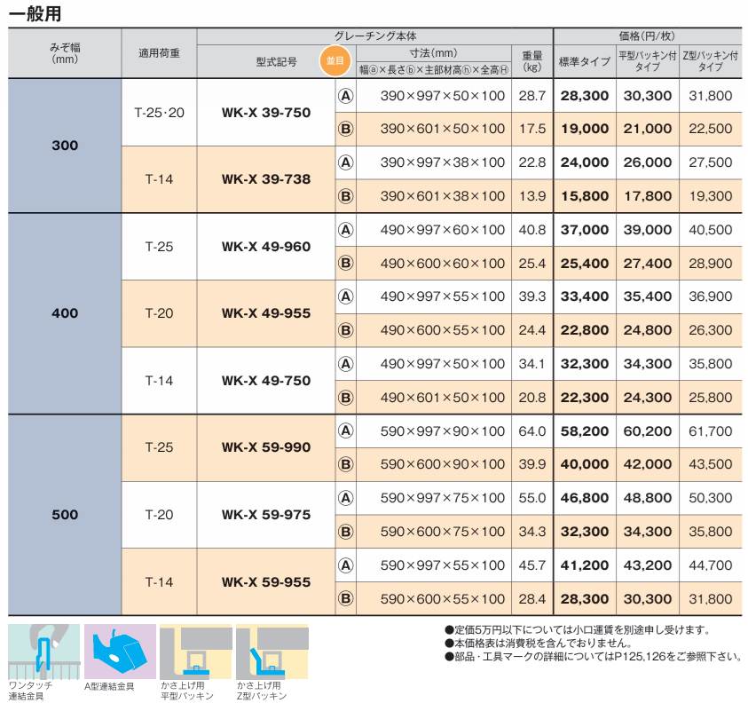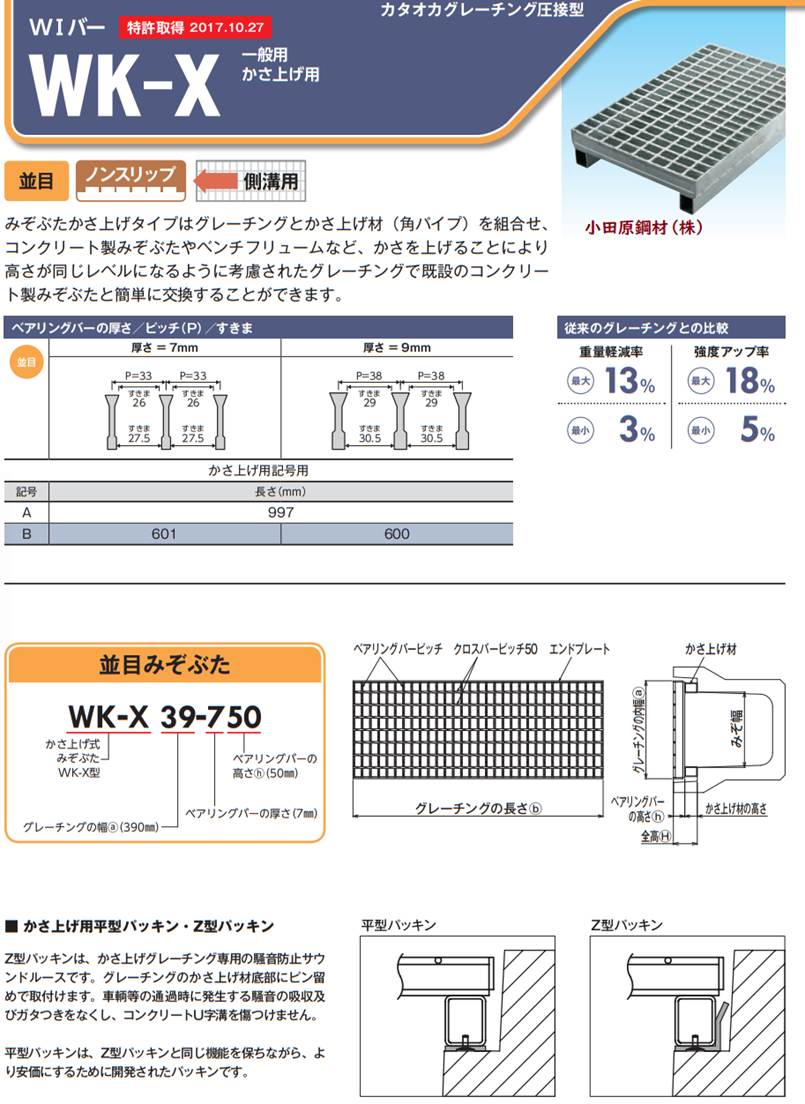 グレーチングの小田原鋼材(株) 片岡産業 一般用 WK−X 定価の40%OFF かさ上げ 並目 ノンスリップ