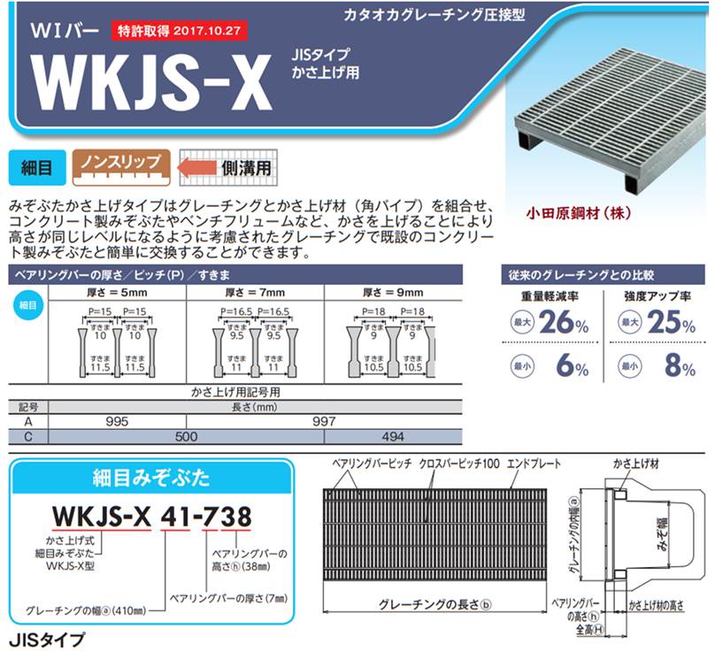 グレーチングの小田原鋼材(株) 片岡産業 JISタイプ 定価の40%OFF! かさ上げ 細目 ノンスリップ