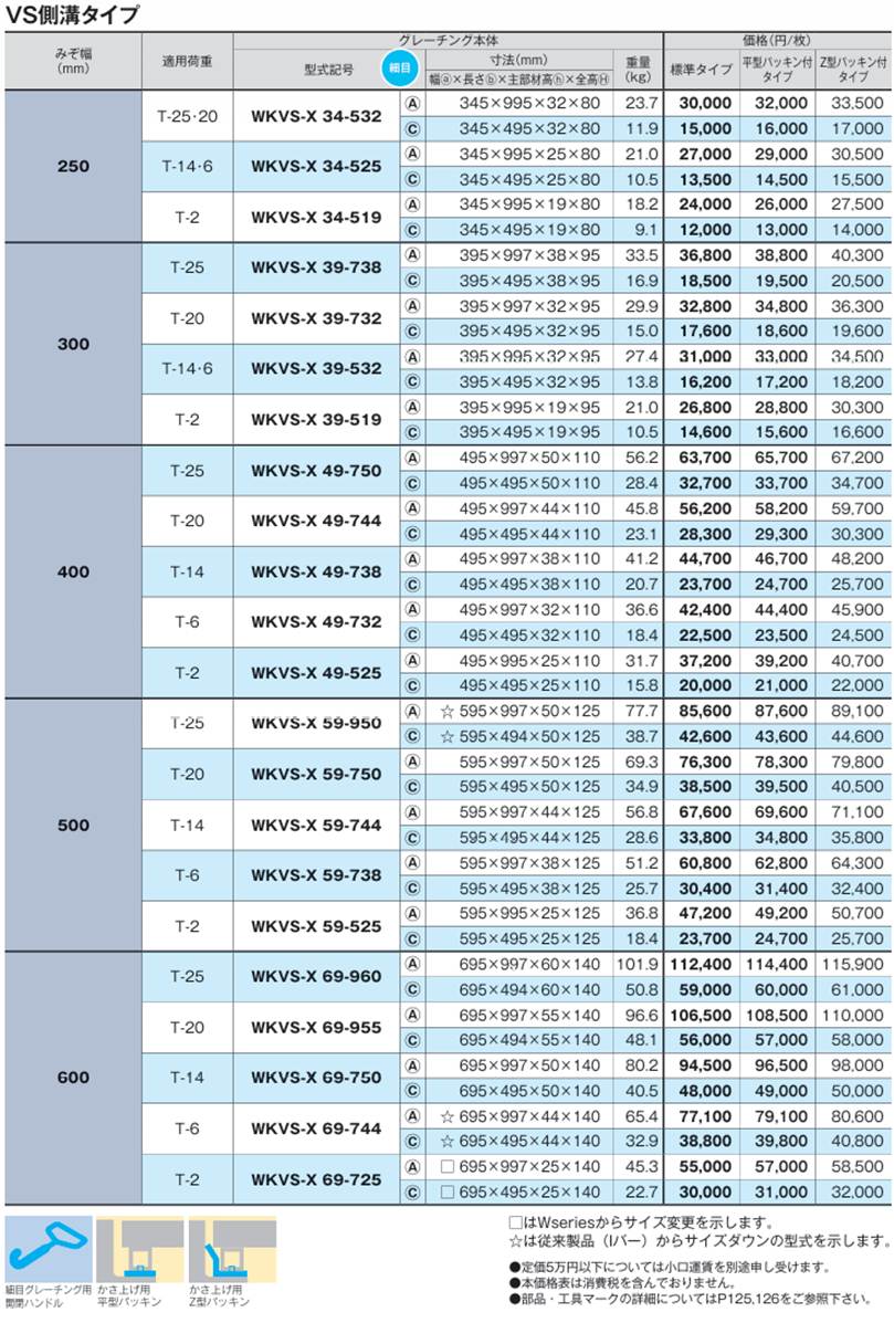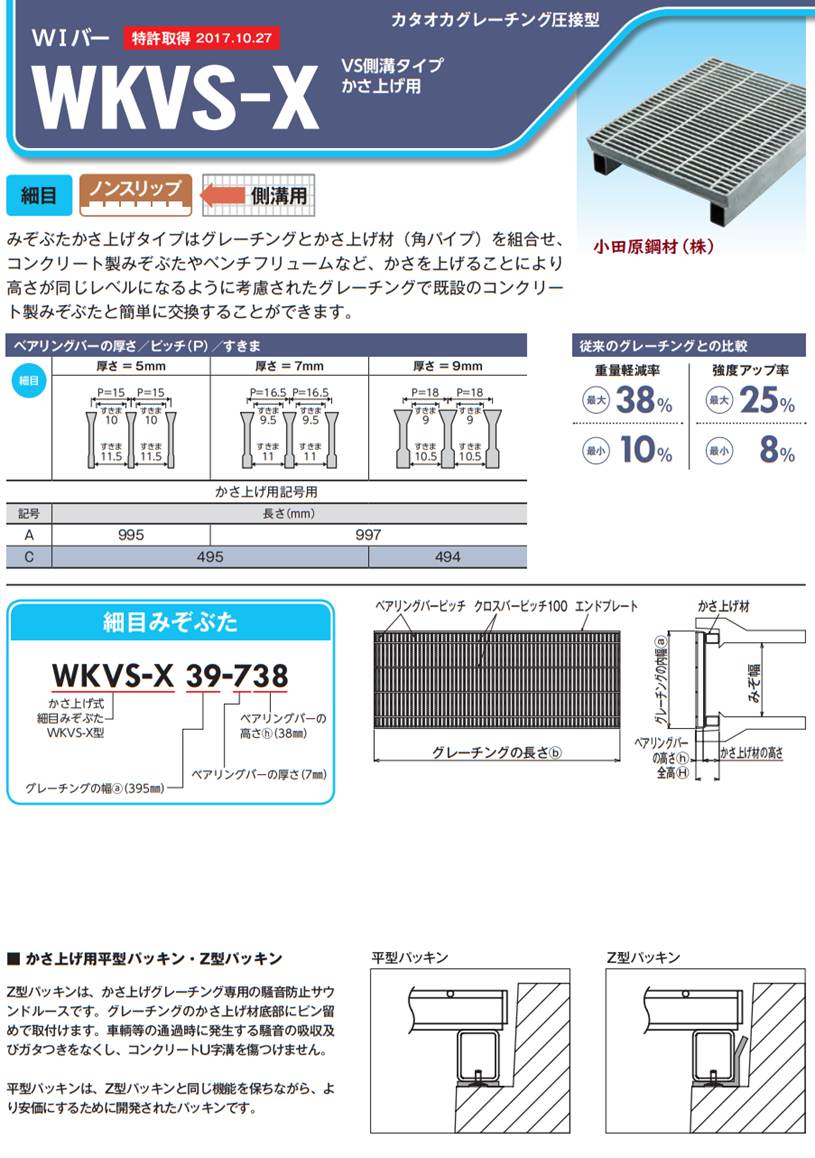 グレーチングの小田原鋼材(株) 片岡産業 VS側溝 かさ上げ 細目 ノンスリップ WKVS−X 定価の40%OFF!