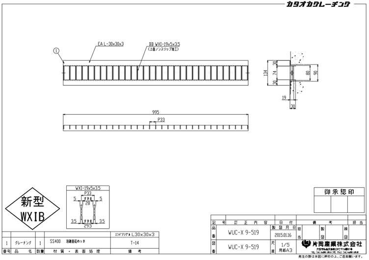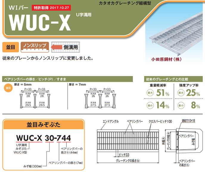 WUC−X グレーチングの小田原鋼材(株) 片岡産業 WUC−X 組込式