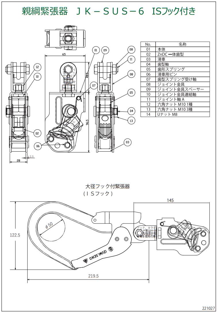 親綱緊張器 JK-SUS-06-MCD(フック取り外し可)